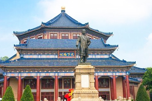 廣州人民和海外華僑為紀(jì)念孫中山先生集資興建的。中山紀(jì)念堂于1929年1月動(dòng)工,1931年11月建成。1956年,重鑄的高5米的孫中山先生銅像屹立在紀(jì)念堂前。1963年對(duì)紀(jì)念堂進(jìn)行了大規(guī)模翻修,屋頂全部采用藍(lán)色琉璃瓦,在6萬多平方米的公園四周增建了鐵柵欄,在園內(nèi)栽種了很多樹木、花卉。